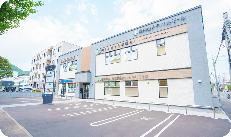 南円山メディカルモール内に18台(表9台/裏9台)の駐車場がございますのでご活用ください。